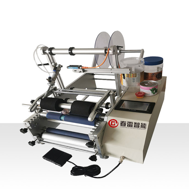 Полуавтоматическая этикетировочная машина для круглых бутылок (включая экран дисплея) — это полуавтоматическая этикетировочная машина, подходящая для маркировки различных спецификаций цилиндрических предметов, этикетирования круглых бутылок с небольшим конусом, таких как ксилит, круглые бутылки для косметических средств, винные бутылки и т. д. Дополнительная лента. принтер и струйный принтер, маркировка и печать номера партии продукции и другой информации одновременно, сокращают процедуры упаковки и повышают эффективность производства.